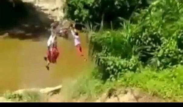 Dari video yang ada, tampak ketiganya masih mengenakan seragam Merah Putih. Mereka menarik keranjang yang terikat tali, lalu meluncur ke seberang sungai seperti flying fox.